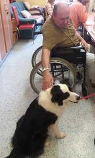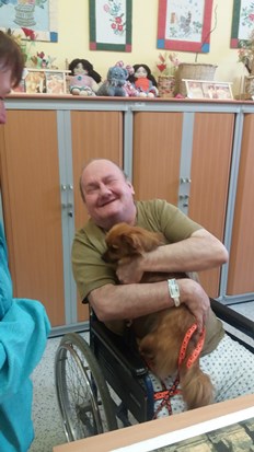 Kontakt se psem představuje účinné rozptýlení pro lidi dlouhodobě hospitalizované – „návštěva pro radost“ a tvoří součást rehabilitace.