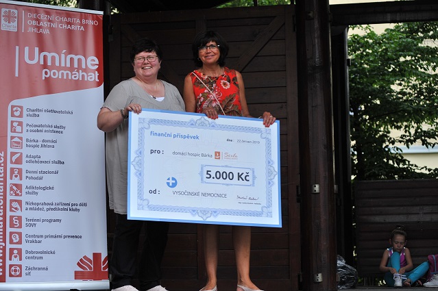 Vysočinské nemocnice s.r.o. podporují seniory a péči o ně, a proto se staly součástí charitativního projektu Běh pro Bárku. Bárka je domácí hospicová péče, kterou má pod svými "křídly" Jihlavská charita a stará se o seniory v domácím prostředí. Jsem rádi, že Bárka existuje a plně ji podporuje. Na akci předala paní Mgr. Lenka Smutná - jednatelka Vysočinských nemocnic s.r.o. šek s finanční částkou na podporu chodu Bárky.