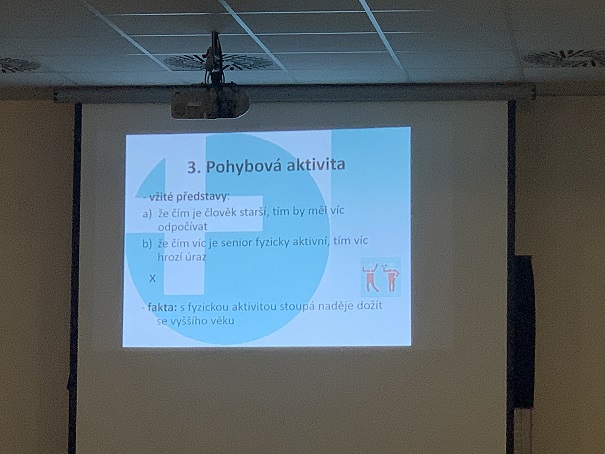 Protože nás zajímá život našich seniorů a spolupracujeme s havlíčkobrodským SenioPointem, stali jsme se součástí bloku přednášek, který se konal u příležitosti Týdne pro seniory v Havlíčkově Brodě. Po úvodním bloku o zdravém životním stylu seniorů předala paní Jana Kudlová slovo paní ředitelce Mgr. Lence Smutné, která představila jednotlivá zařízení našich nemocnic. Na toto úvodní slovo navázala svojí prezentací fyzioterapeutka Martina Lagronová, která se zastavila nejen u zdravého životního stylu, ale zaměřila se hlavně na problémy spojené se stárnutím našeho organismu, doporučila jednoduchá cvičení a předala jednoduchý návod, jak se lépe starat o naše tělesné schránky a to nejen v seniorském věku.