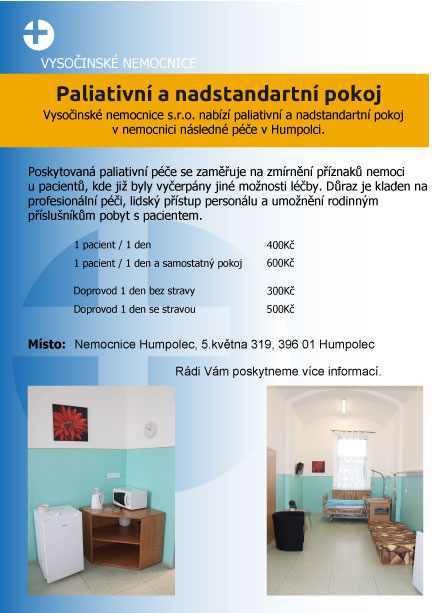 V případě Vašeho zájmu, rádi zodpovíme Vaše dotazy ohledně paliativní léčby a poskytnutí paliativního a nadstandartního pokoje.