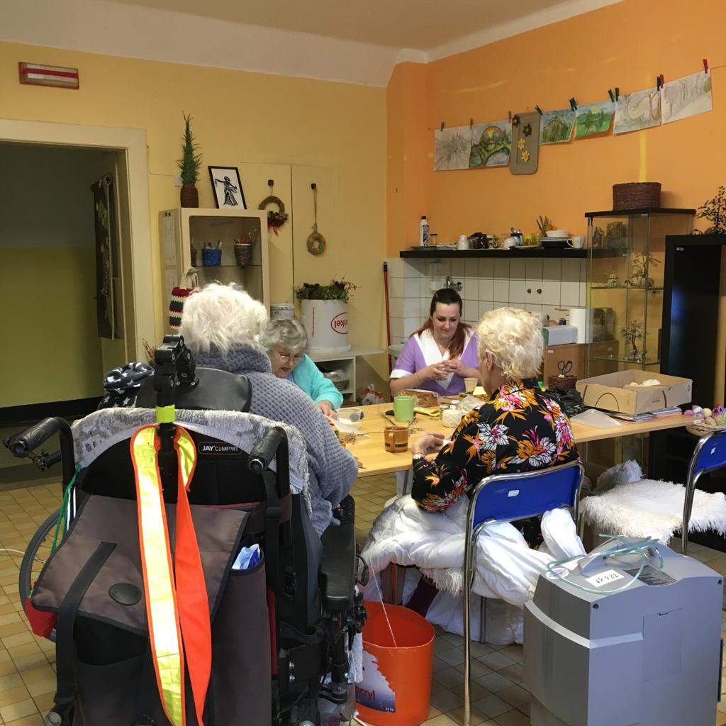 Na druhou stranu je důležitý nejen pohyb, ale i kreativita. S našimi pacienty pravidelně tvoříme v rámci ergoterapie. Je to příležitost si společně vypít kávu či čaj, popovídat si, zavzpomínat a ještě kreativně zaměstnat ruce.