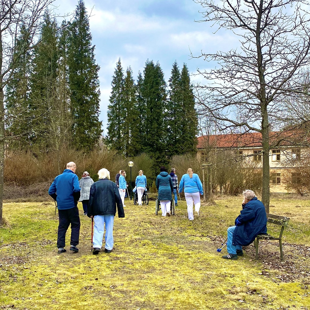 Chůze v proměnlivém terénu, vhodné klimatické podmínky, pohyb na čerstvém vzduchu a samozřejmě veselá nálada – i to patří do naší pravidelné rehabilitace.
