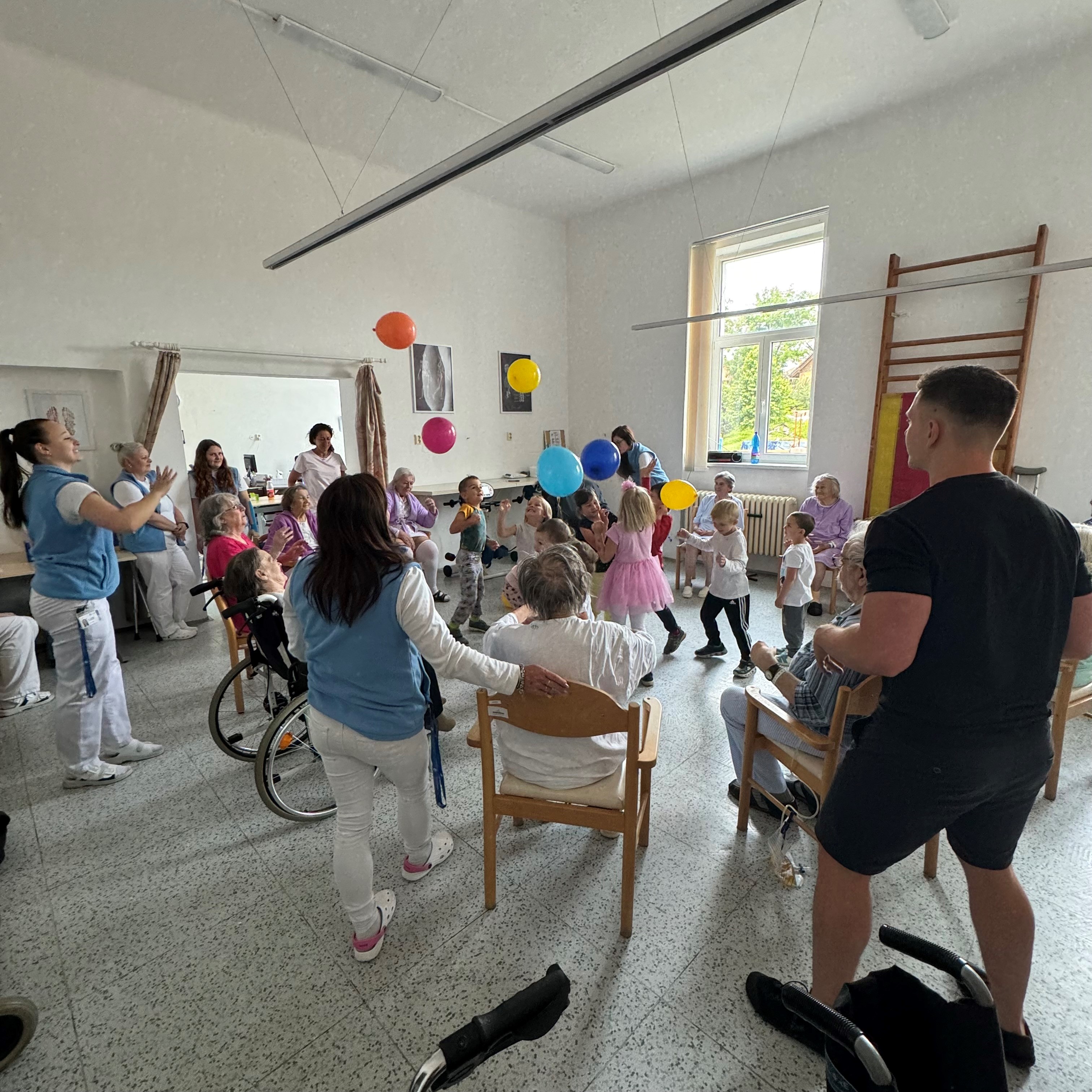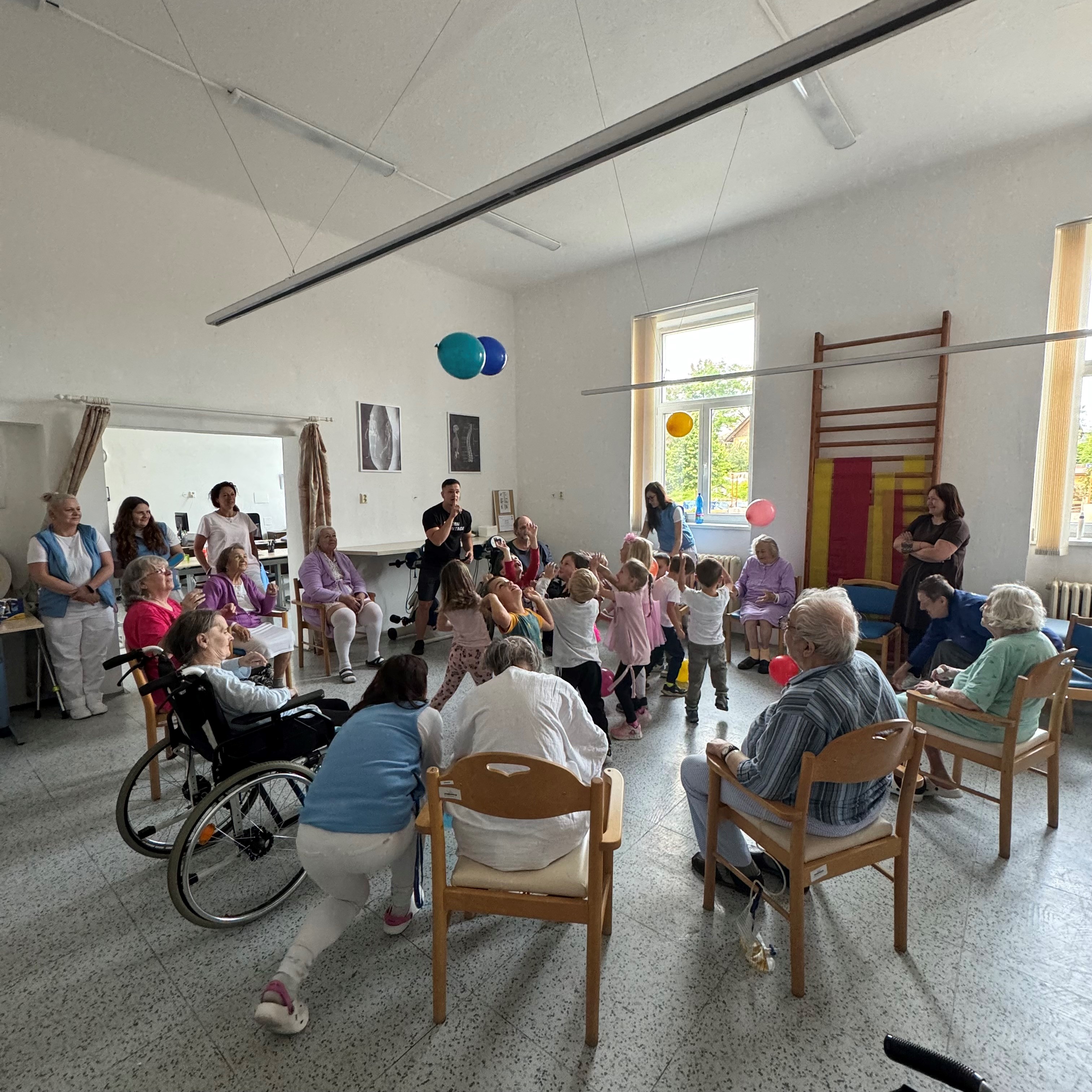 Díky Společnosti pro rozvoj Humpolecka, z. s., jsme měli tu možnost se zapojit do aktuálně probíhajícího projektu ,,Bavíme se na Vysočině‘‘😊Projekt je zaměřen na aktivity podporující mezigenerační vazby a setkávání.Jednou z dané aktivity, do které jsme byli zapojeni bylo cvičení s míči pro děti a seniory. Naši klienti si tak mohli společně pod dohledem odborného personálu s dětmi z místní MŠ zacvičit nejen s míči a užít si tak hezky společně strávený čas ❤️Děkujeme za krásně strávené dopoledne a už nyní se těšíme na další společné setkání 😊#naslednapece #lecba #vysocinskenemocnice #bavimesenavysocine #humpolec #spolecnostprorozvojhumpolecka