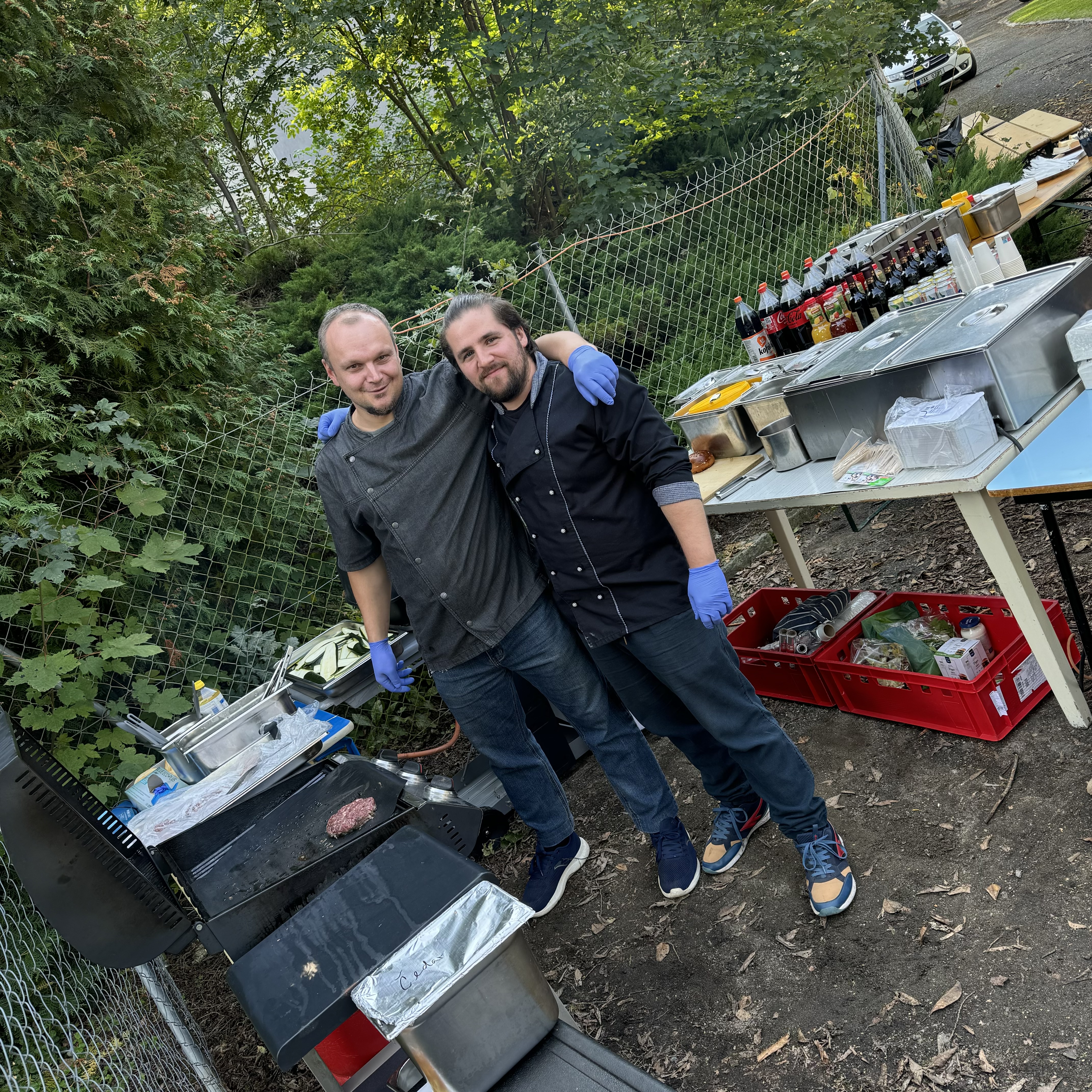 Využili jsme posledních hezkých dní k tradiční setkávací akci pro zaměstnance, kde jsme prezentovali i gastronomické nápady našich kolegů z kuchyně. Ochutnat jsme mohli skvělý domácí burger, bagetu s trhaným masem, několik druhů salátů, apod…