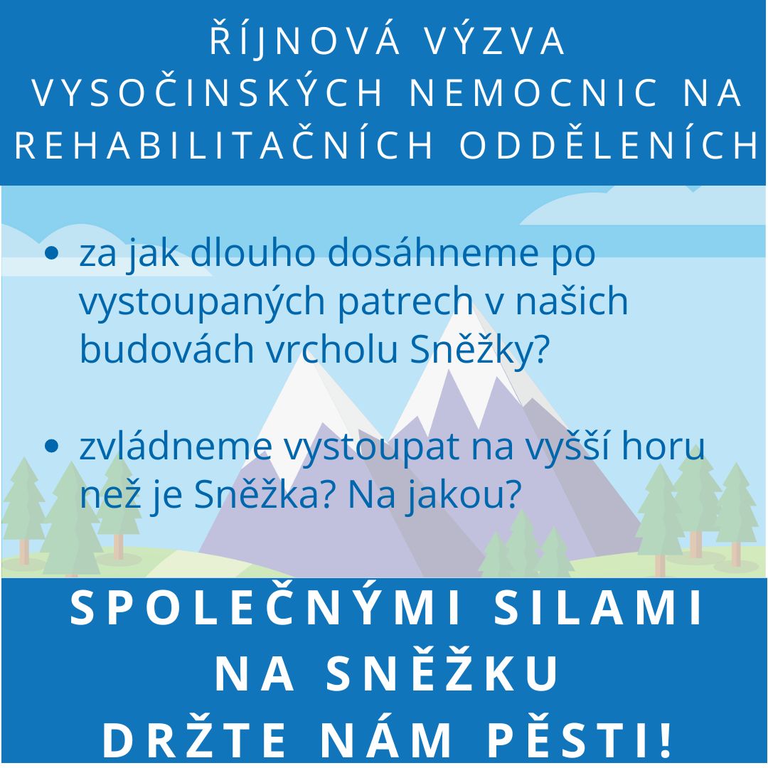 V rámci rehabilitace jsme si pro naše pacienty připravili výzvu - dosáhneme vrcholu Sněžky? Nebo snad zvládneme zdolat nějakou vyšší horu? Na začátku listopadu zveřejníme jak se pacientům dařilo. 😊🏔️#vysocinskenemocnice #rehabilitace #challange