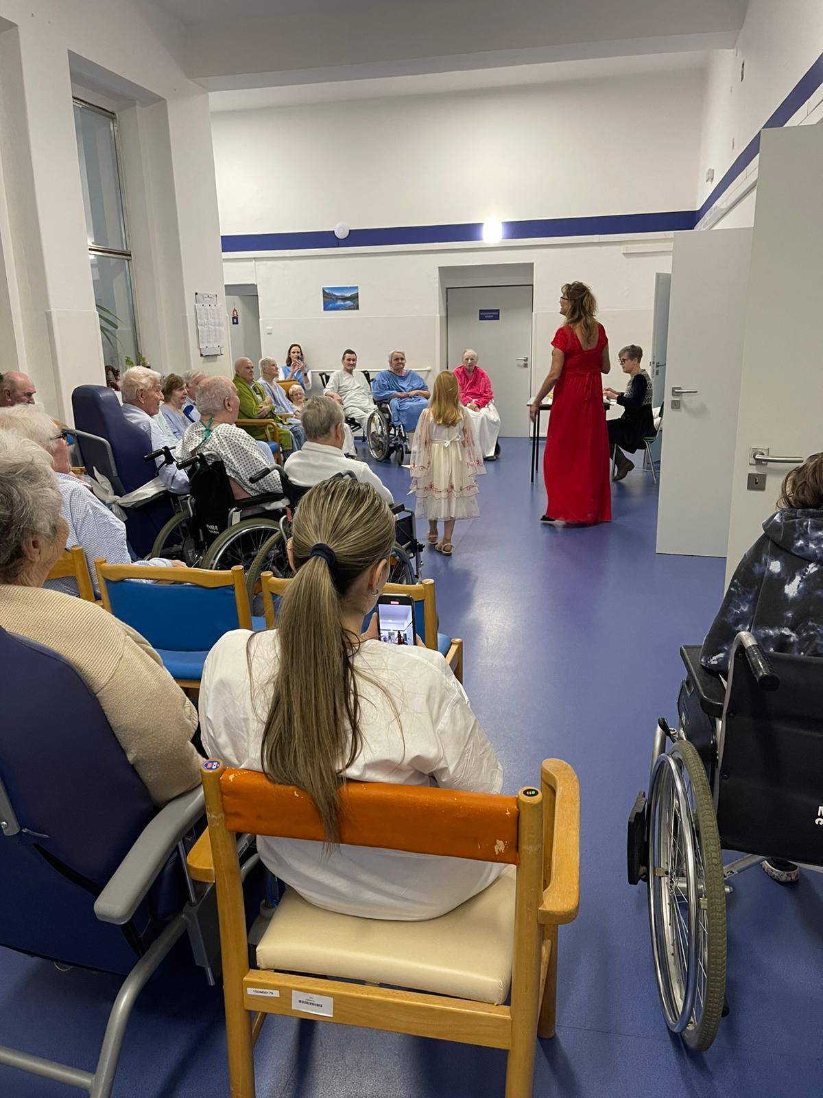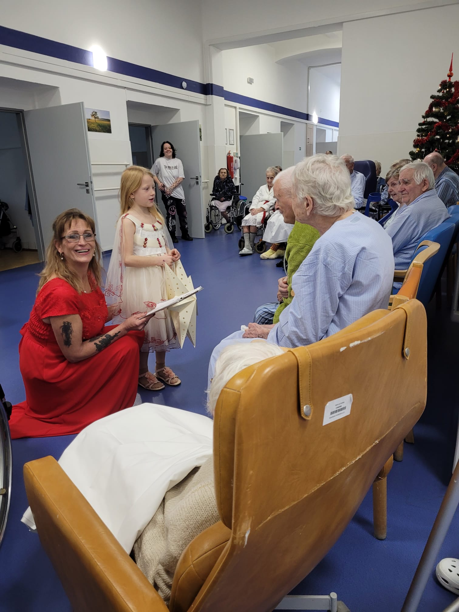 Adventní období je i u nás v plném proudu a my přicházíme s programem 3. adventní neděle. Tentokrát jsme sáhli do řad našich zaměstnanců, kde nám svůj talent odhalily skvělé sanitářky Iva Fikar a Marcela Málková. Na pomoc si přizvaly dětskou návštěvu a tím tak potěšily naše klienty nezapomenutelným zážitkem. Kromě běžného hudebního vystoupení si přichystaly krátký vánoční příběh o původu adventního věnce a významu jednotlivých svíček. Moc děkujeme za krásný zážitek.