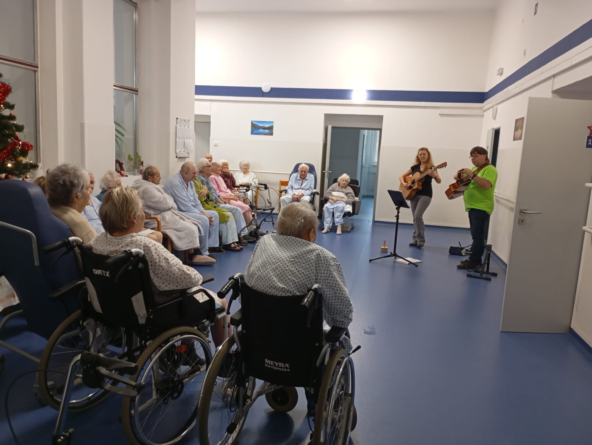 Přejeme všem krásnou 4. adventní neděli. Na tento den jsme si pro naše klienty připravili poslední adventní koncert letošního roku. Dnes se nám o program postaralo duo „TY A MY“, které nám zahrálo na kytary. Slyšeli jsme nejrůznější písně, které si všichni mohli společně zazpívat. Ještě jednou děkujeme všem účinkujícím, kteří našim pacientům tento krásný vánoční čas zpříjemnili a přejeme Vám krásné Vánoce.#lecba #naslednapece #vanoce