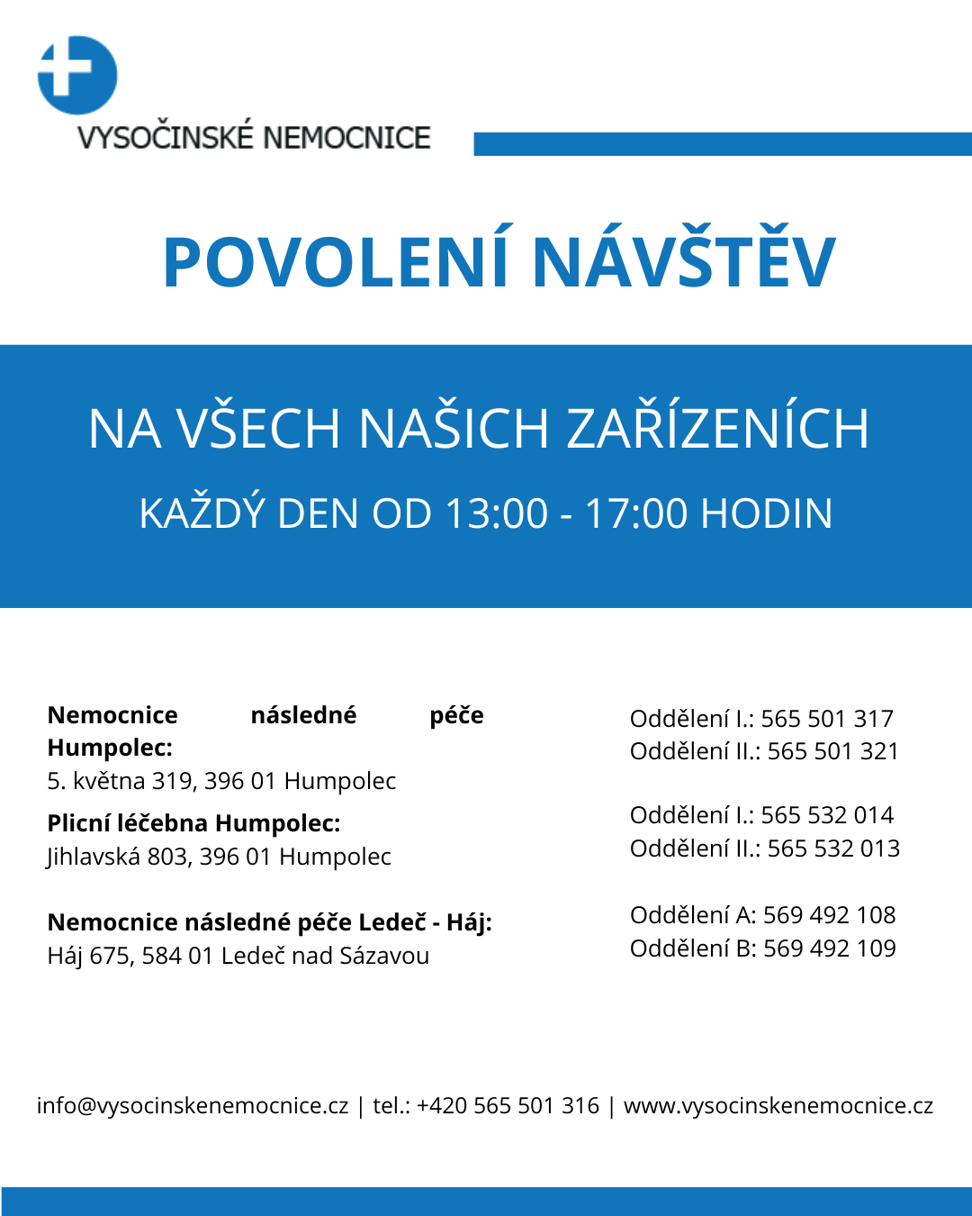 #vysocinskenemocnice #navstevypovoleny #blizcijsoulek #lecivapritomnost #podporapacientu #cassblizkymi