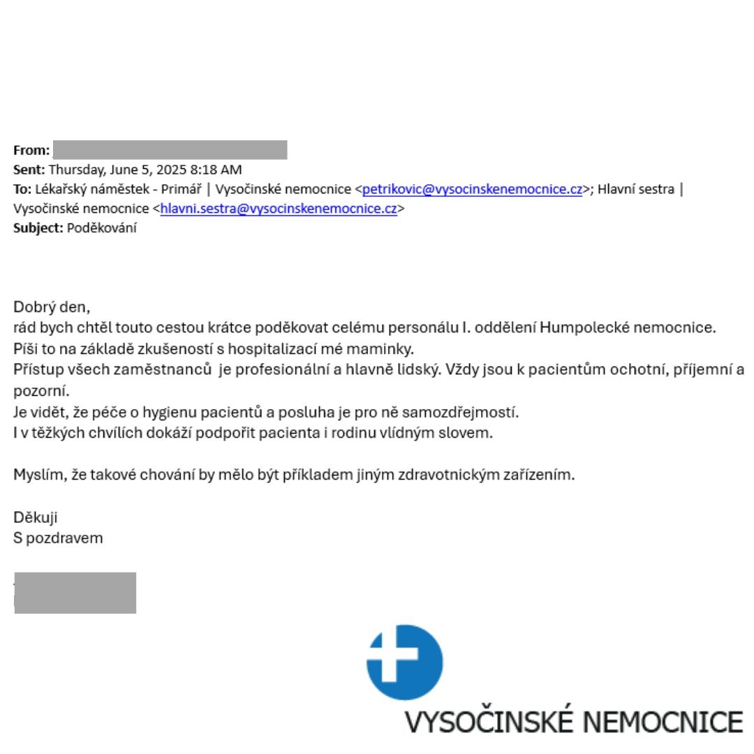 Velmi nás těší, že i v dnešní uspěchané době nám chodí tyto e-maily, které potěší naše zaměstnance.