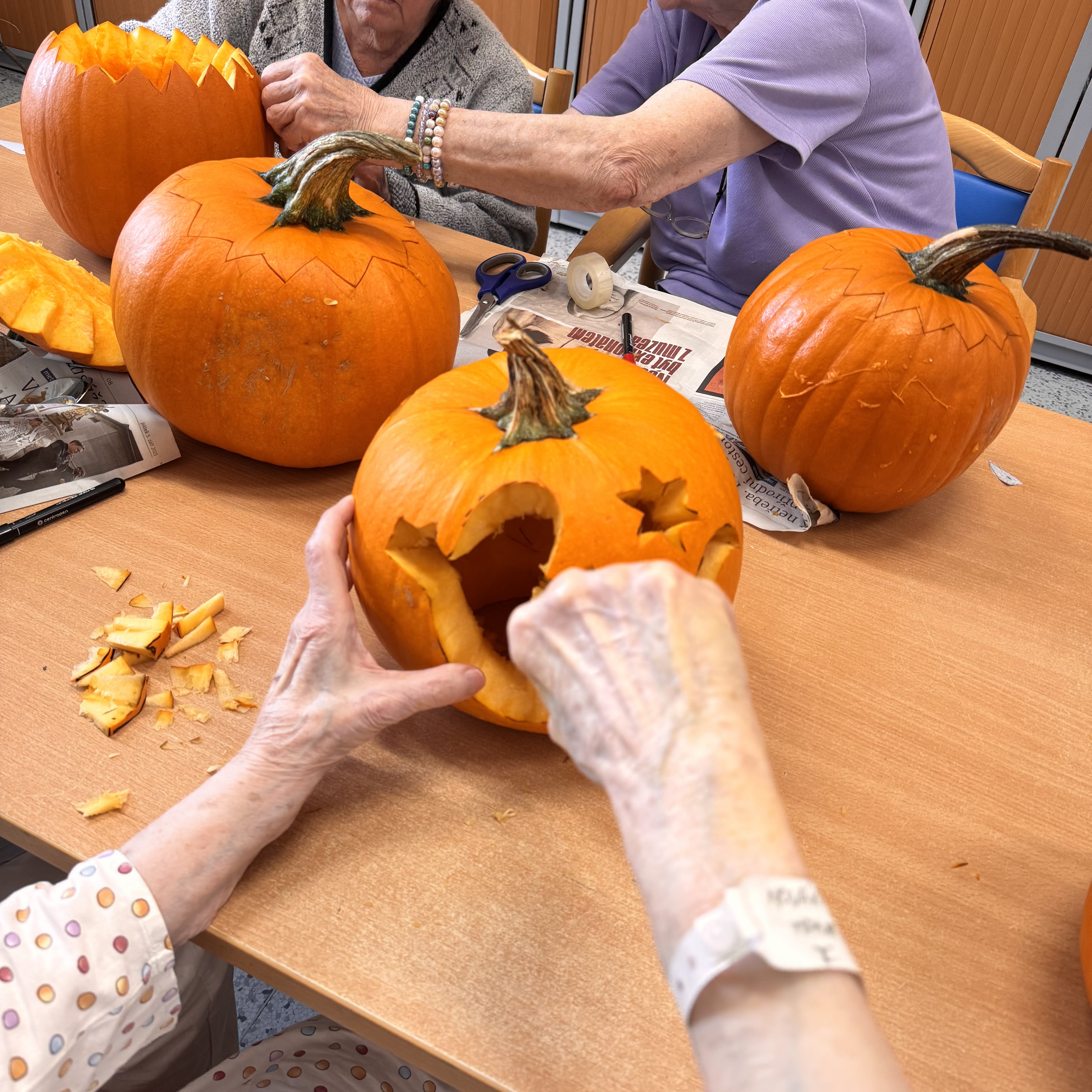 V naší nemocnici jsme si tento měsíc v rámci ergoterapie užili pravou podzimní atmosféru 🍂. Pacienti se s chutí pustili do dlabání dýní, které rozjasnily prostory nemocnice a přinesly spoustu radosti i úsměvů 🎃. Děkujeme všem, kteří se zapojili – výsledek stojí za to! 💛