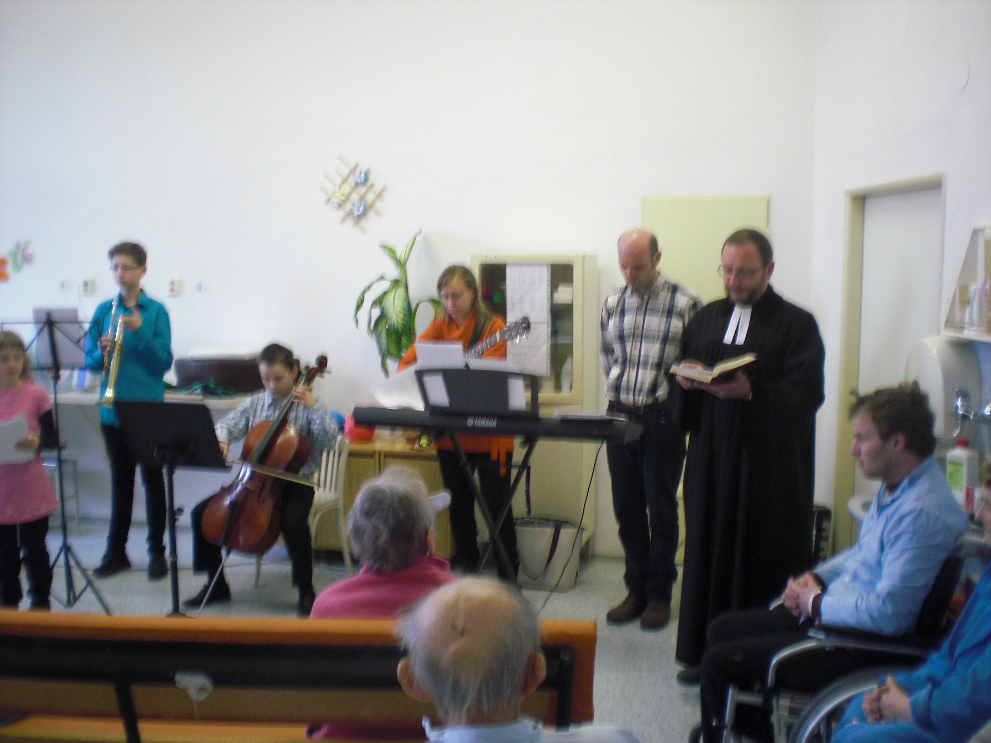 Bohoslužbu vedl farář Českobratrské církve evangelické v Třebíči Tomáš Potoček a humpolecký evangelický farář Pavel Šindler. Společná motlitba s biblickými texty byla doprovázena žalmy v podání skupiny muzikantských nadšenců a u klientů humpolecké léčebny dlouhodobě nemocných sklidila velký úspěch.